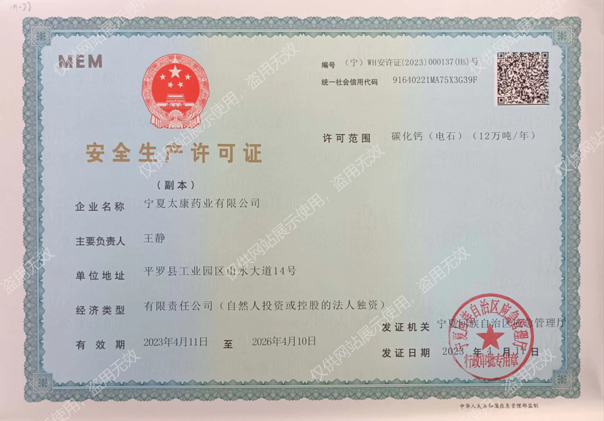 寧夏太康藥業(yè)有限公司是寧夏大地循環(huán)發(fā)展股份有限公司全資控股企業(yè)。工廠(chǎng)占地面積1600畝,擁有固定資產(chǎn)6.74億元人民幣,總裝機(jī)容量16萬(wàn)KVA,是寧夏回族自治區(qū) 40家大型工業(yè)骨干企業(yè)之一。企業(yè)現(xiàn)有員工1100余人,其中主要管理人員134人,專(zhuān)業(yè)技術(shù)人員112人,高級(jí)工程師5人、工程師10人、經(jīng)濟(jì)師3人、技師15人,公司擁有年生產(chǎn)能力:醫(yī)藥中間體產(chǎn)品-雙氰胺6WT、單氰胺5000T、一水肌酸3000T、氨基胍碳酸鹽3000T;化工基礎(chǔ)原料產(chǎn)品-石灰氮22.5WT電石12WT。